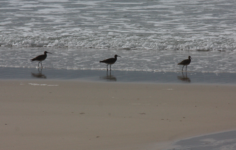 Dos vistas de Louro: zarapitos en su playa, y un detalle de la laguna, a rebosar después de las mareas vivas de la semana.